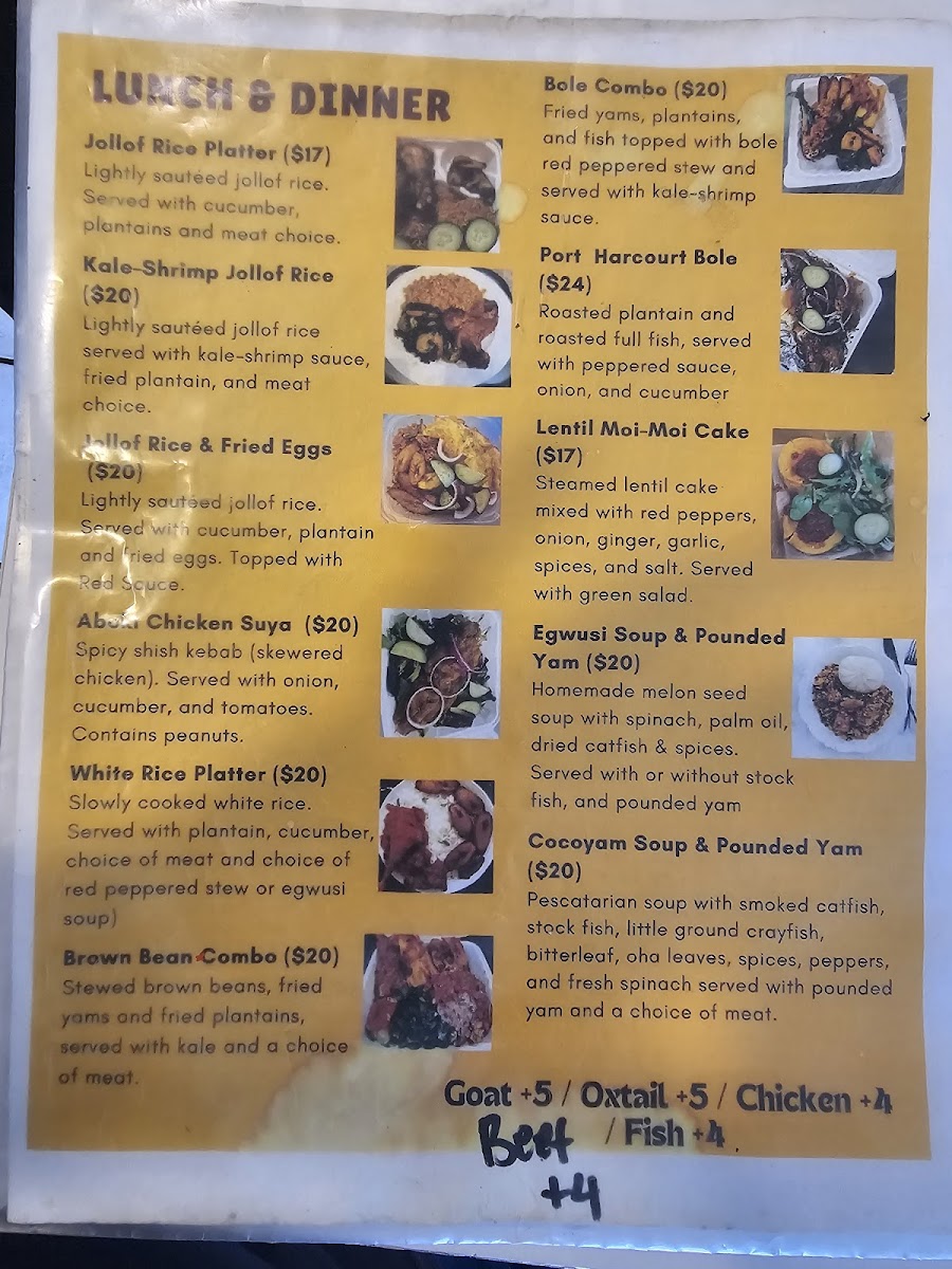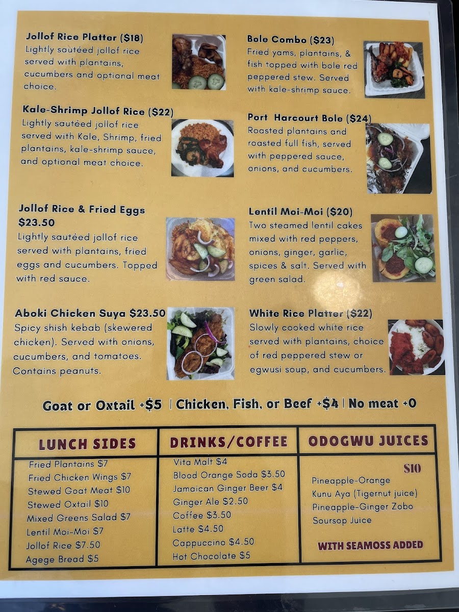 But the adventure doesn’t stop there! On weekends, treat yourself to specials that include Ukwa & Ugba and Porridge Ghana Yam & Unripe Plantains, each dish embodying hearty goodness and cultural significance. And don’t forget to quench your thirst with one of their Odogwu Juices for a refreshing finish to your meal.