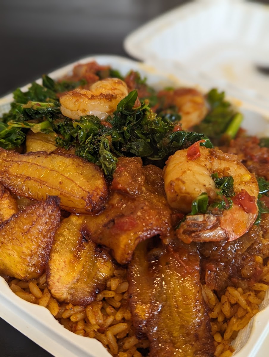 The menu is a treasure trove of options, featuring popular dishes sure to delight any palate. Indulge in the iconic Jollof Rice—a vibrant rice dish with a bold blend of spices, served alongside juicy Stewed Chicken or Fried Plantain that adds a crispy sweetness. If you're adventurous, don’t miss the Egusi Soup, a hearty blend of melon seeds and vegetables that pairs wonderfully with Fufu (Pounded Yam), providing that perfect textural contrast. For meat lovers, the Stewed Oxtail and Stewed Goat Meat promise to be an experience, bursting with juicy flavor and melt-in-your-mouth tenderness.